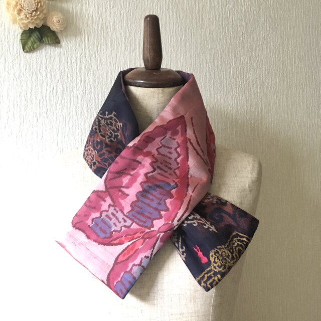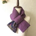 銘仙×ワンウォッシュ麻の小さな襟巻き2045C ストール ネックウォーマー プチマフラー リバーシブル 着物リメイク
