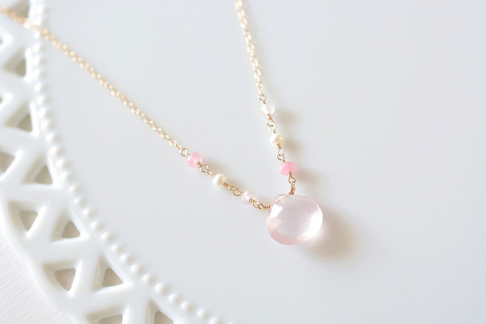 透明感のあるピンクが可愛いローズクォーツをネックレスに仕立てました。