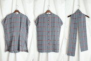 コシのあるチェック織りで、タック入りの後ろ開きブラウスを仕立てました。