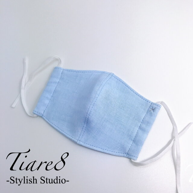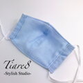 ※こちらは、以前ご好評いただき完売した格子織り柄のサックス(水色)マスクと同じ色の生地を使ってお作りした無地バージョンの【お子様向けサイズ】マスクです。