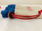 真っ青なブルーのリネンで作った小さなおつかい袋です。
