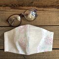 亜麻色のリネンと白地にピンクの花が可憐に咲く模様の生地を使い
