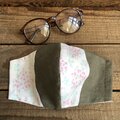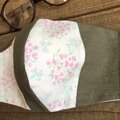 松葉色のリネンと白地にピンクの花が可憐に咲く模様の生地を使い