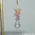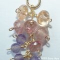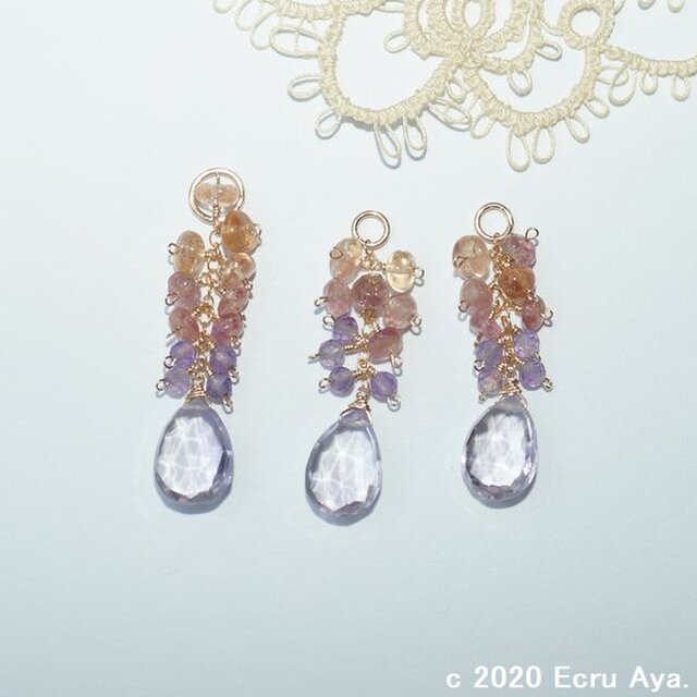 丸カンを上に通し、上からインペリアルトパーズ、サクラピンクトルマリン、アメジストの順にさげました。
