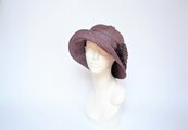 紫色の手織り紬の着物(絹100%)から作ったつば広帽子です。