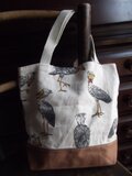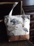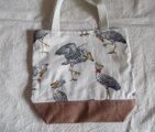 麻地にハシビロコウ柄の生地で作ったミニトートバッグです。