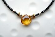 キラキラと美しく輝くしずく型のシトリンを中央に配したブラックスピネルのネックレスです。