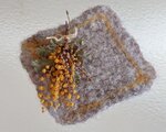 羊毛フェルトのお人形とミモザのスワッグ、羊毛シートを組み合わせました。