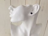 タティングレースの手法で編んだ花弁に、ビーズで編んだ花芯を組み合わせたお花のノンホールピアスです。