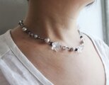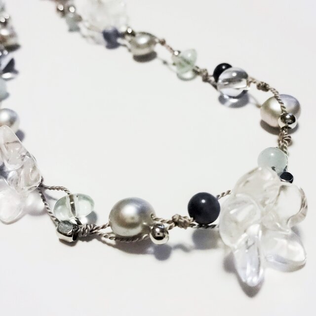 透明感あふれる水晶のお花をちらした涼しげなネックレスです。