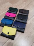 革 紺と黒 糸 ベージュ(麻糸) ホック アンティークゴールド(真鍮)