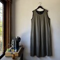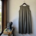 うさぎのナチュラルワンピース045(綿レーヨン・ベージュ)銘仙リメイク 古布 ノースリーブ ゆったり ロング 大人可愛い
