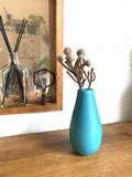 マットな質感の綺麗なターコイズブルーの花瓶です。