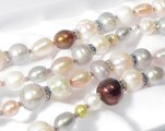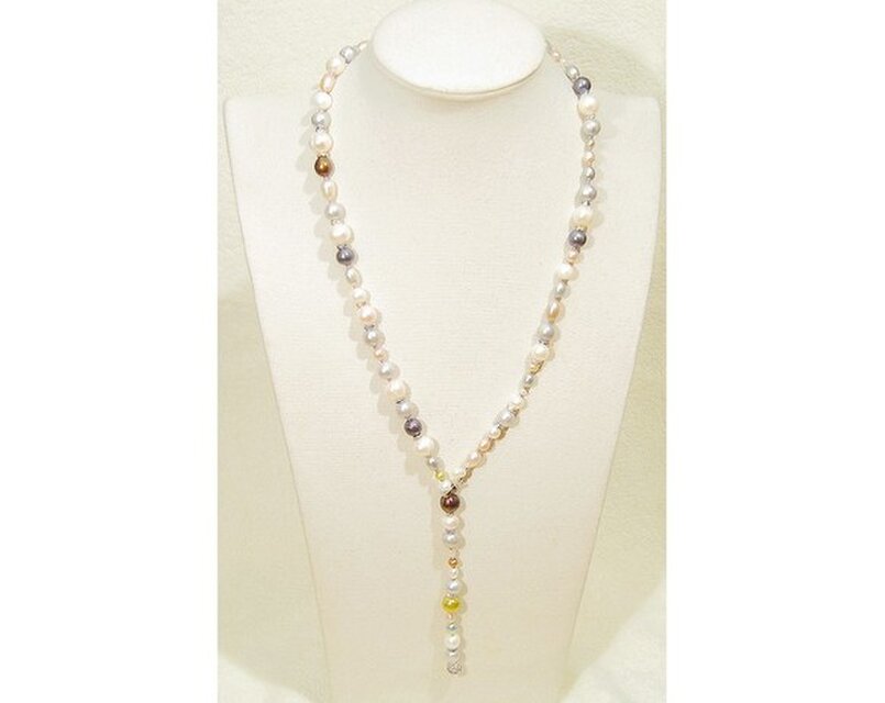 カラフルな本真珠(淡水)のYネックレスです。クラスプの留める位置により、円形のロングネックレスにもなります。