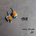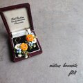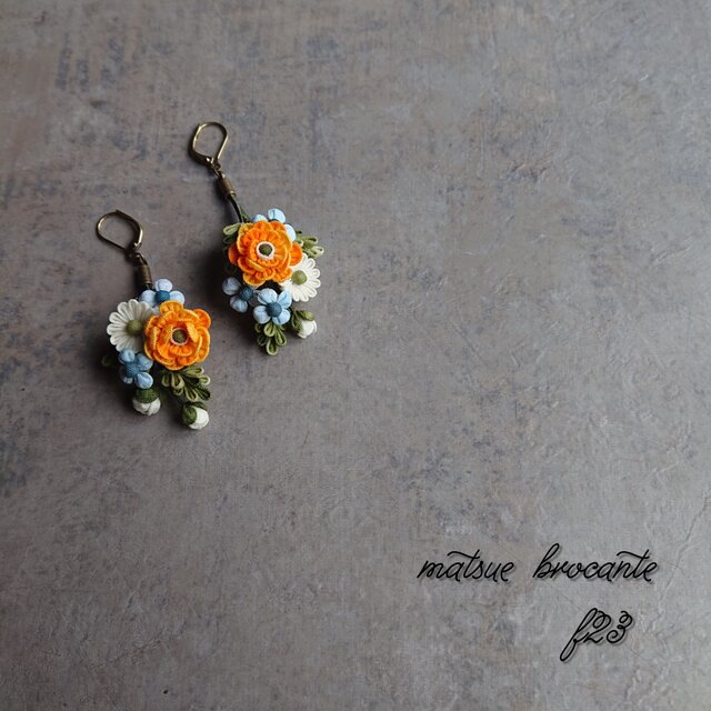 つまみ細工 ラナンキュラスのブーケ ピアス ゴールデンイエロー