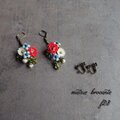 つまみ細工 ラナンキュラスのブーケ ピアス ポピーレッド