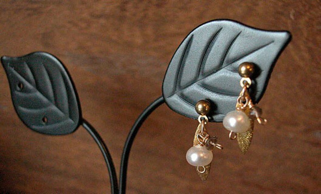 リーフ型のベルメイユに淡水パールと小さなスモーキークォーツの
