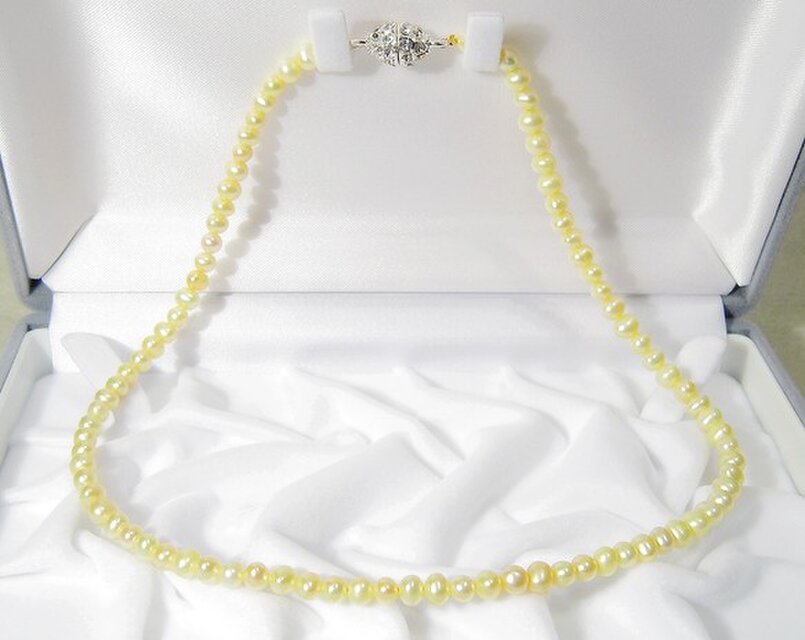 小粒で明るいイエローの本真珠(淡水)のネックレスです。