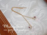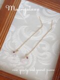 薄いピンクのローズクォーツの横で深いレッドのガーネットが揺れ、