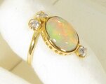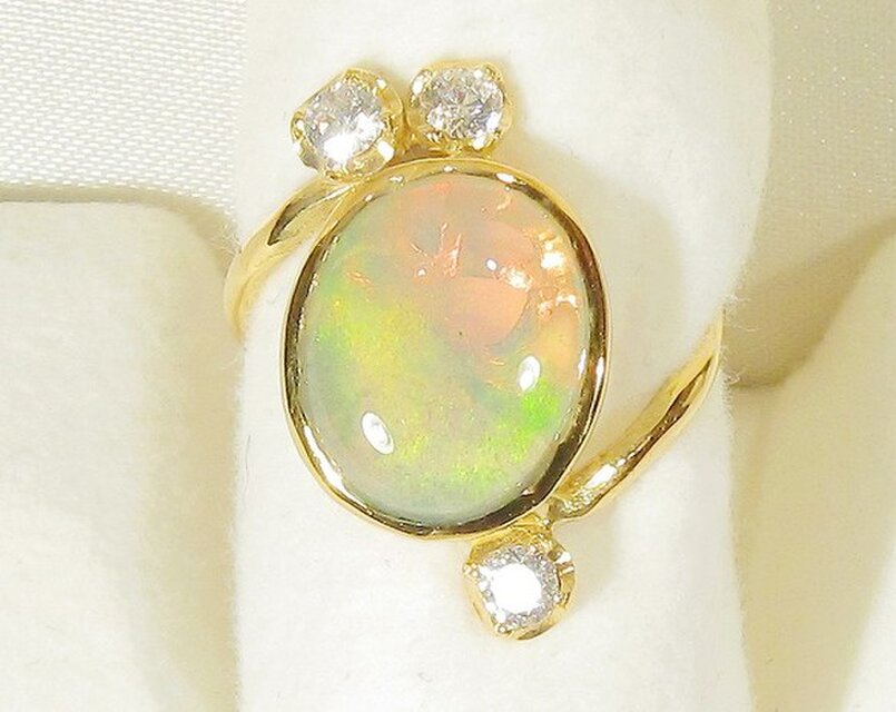 オーストラリアの閉山してしまった鉱山から採れた貴重なオパールを、K18イエローゴールドの枠に留めた指輪です。