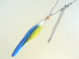 粘土の羽根飾り_ルリコンゴウインコ_ネックレス(チェーン・革紐)_P大