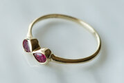 この大きさの違う二つのルビーに手をかけ始めた時には、それぞれ1つずつそれぞれがそれぞれの指輪になるんだろうなぁと思いながら仕立て始めました。