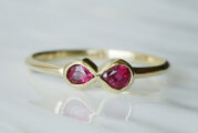 大きさの異なるペアシェイプのルビーを2つ、向かい合わせて仕上げました。