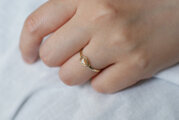 とにかく可愛いリングです。 色、形、大きさ、どれをとっても素晴らしく、つけると指が明るくなります。 子供の時に憧れた指輪を手にした感じで、とても幸せです。