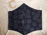 リネンのストライプ柄の生地とコットンの渦巻き柄を使用しています。