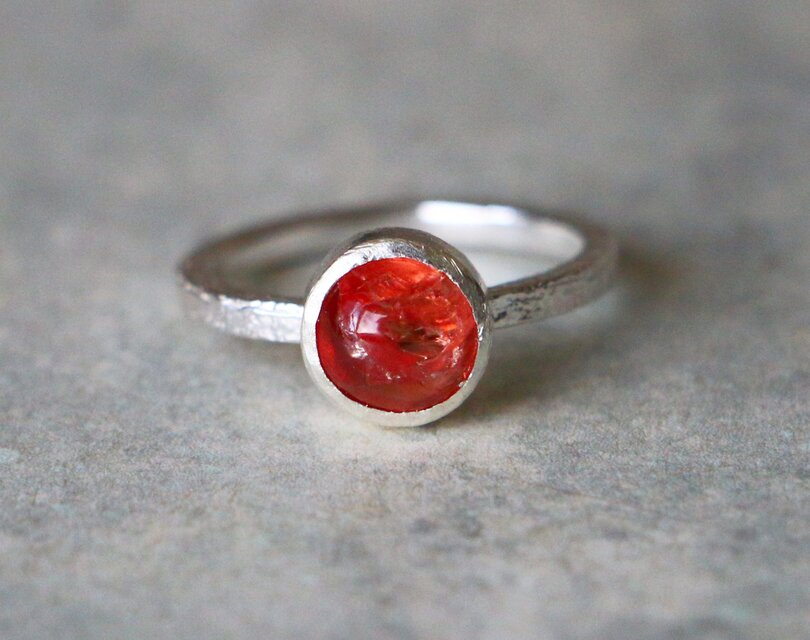 現代の手作りの指輪細工。バンド部分はハンマード技法です。