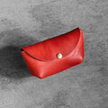 手のひらに収まるコンパクトなサイズ感ながら、しっかりとした存在感のあるレザーポーチ。