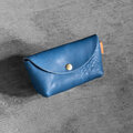手のひらに収まるコンパクトなサイズ感ながら、しっかりとした存在感のあるレザーポーチ。