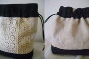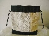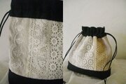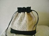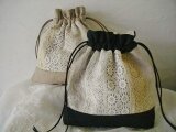 異なるタイプのアンティークレースを贅沢に組み合わせた巾着ポーチ