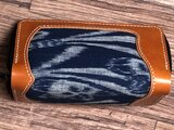革と古布(藍染絣)のコラボ。