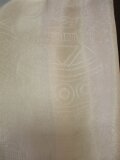 大きめに作りました。布をあまり切りたくなくて、でもとても軽く肌触り抜群です。白に見えますが、極薄いオレンジです。