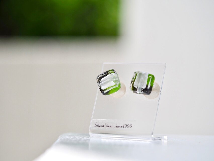 *vivid & clear*スクエアガラスピアス(NEON GREEN)