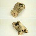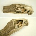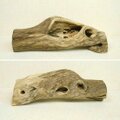 穴がいくつも開いた丸太、中央の大きな穴は瞳のような形です。