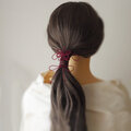 ※先にゴム部で髪をまとめ、垂れている紐部分をその上から巻きつけて使用します。画像を添付していますのでそちらを参照ください。この点についてお問い合わせ頂いてもお答えできません※
