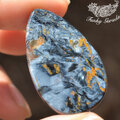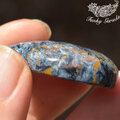 厚みのあるルースの中にはスパイシーな模様とその中にはシルクのように輝くピータサイト特有の輝きを見てとることのできるもの。