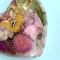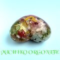 淡い色のヘリクリサムやラナンキュラスたちが愛らしいオルゴナイトです。