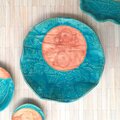 一番の特徴でもあるデザインは、石膏板にセンマイ通しでひたすら彫り続けていき、その後石膏板に粘土を叩きつけると、紋様が粘土の表面に写るという技法です。