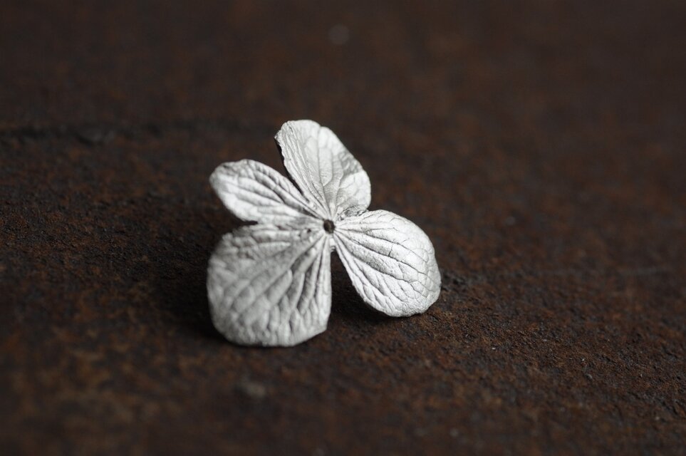 この作品は、紫陽花の花をそのまま銀に写しとる手法でブローチに仕立てています。