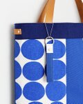 白地にブルーのドット柄を基調に、表と裏でデザインが違う2デザインフラットトートバッグを作りました。