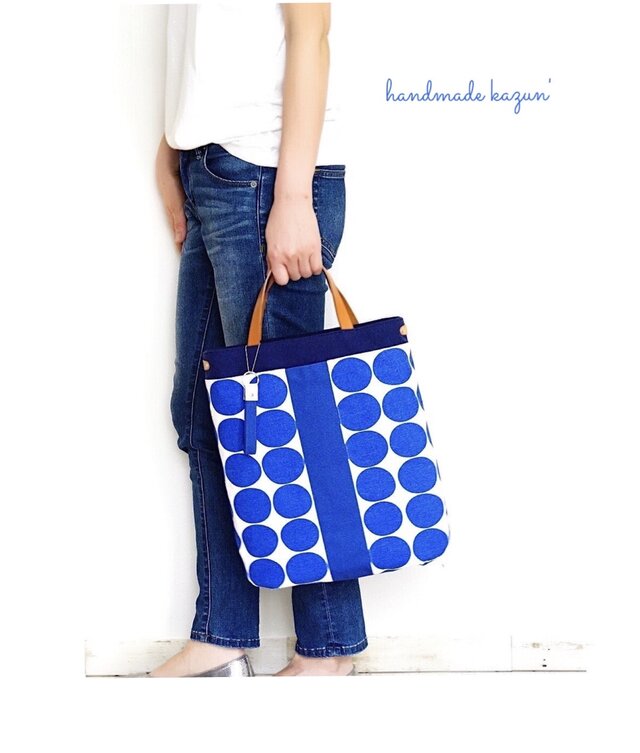 ・表の白地に濃い青のドット柄(ドットの直径は5.5~6センチ)は、日本製・綿100%のキャンパス地。
