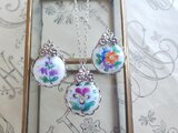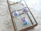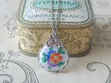 ヴィンテージ Colorful・flowers/3-flowers Silverネックレス