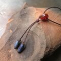 二本の紐をまとめるのは、イエメンから伝わった琥珀。