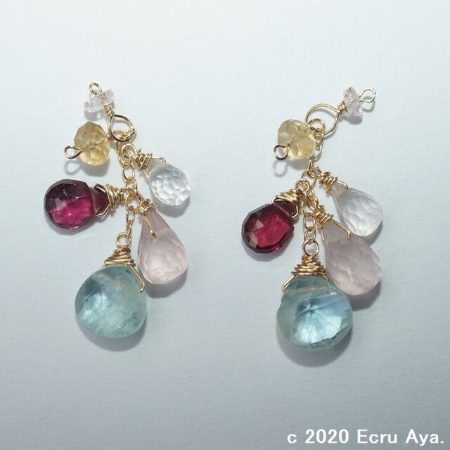 素材:最上級ピンクサファイアAAA ボタンカット、宝石質シトリンAAA ボタンカット、宝石質ホワイトトパーズAAA ドロップブリオレットカット、宝石質ローズクォーツAAA ドロップブリオレットカット、宝石質モザンビーク産ガーネットAAA ペアシェイプブリオレットカット、宝石質アクアマリンAAA マロンブリオレットカット、その他全て14kgf