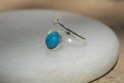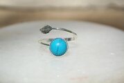 ターコイズのカボッションを、シルバーコーティングのリーフ柄の土台にセットしました。