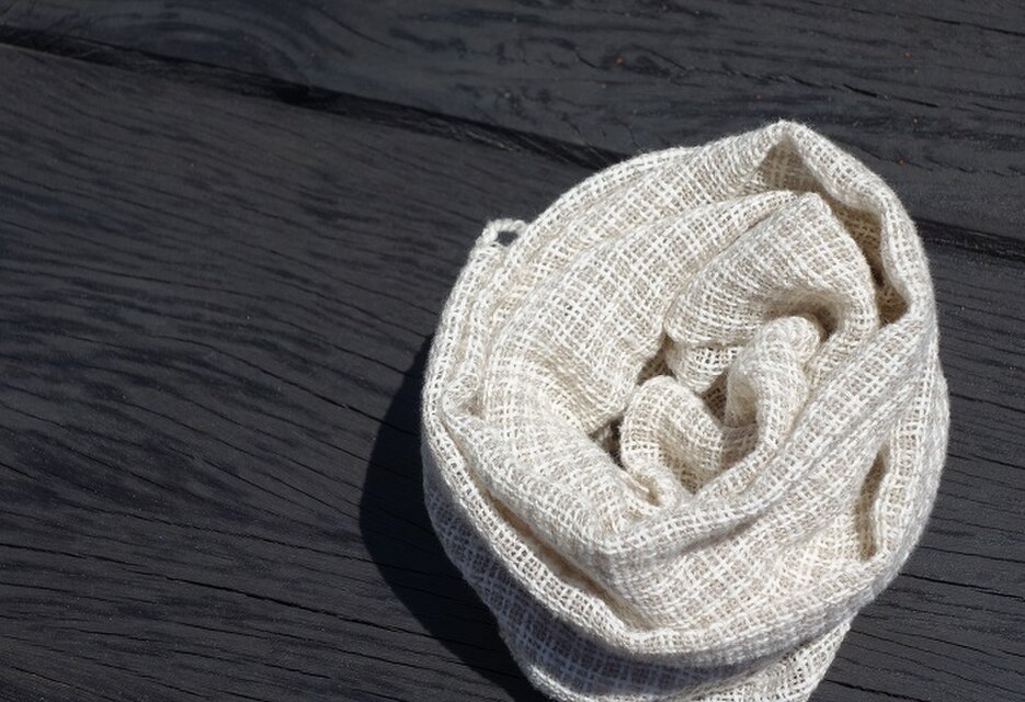 生成りは手紡ぎ糸で(私が紡いだのではなく、手紡ぎ糸として購入しました)、ふんわりと温かみのある風合いです。