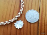 2ミリ幅のホワイトの本革平コードを四つ組みで丁寧に編み込んだブレスレットです。